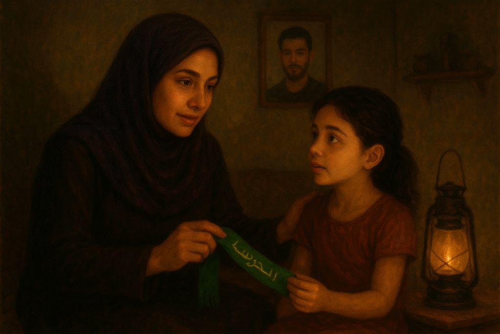 Salma’s expression dimmed, the weight of reality pressing back. “Yes, my daughter. They fought Israel with rockets, with tunnels, with boldness that shook even their enemies. They made the world see that Palestinians could not be erased. But every act of defiance brought fire upon us. Every war, every blockade, every child buried too soon. We carried that cost. And yet, for your father, for many like him, that green band was not just cloth. It was a promise, a promise that Gaza would never bow.”